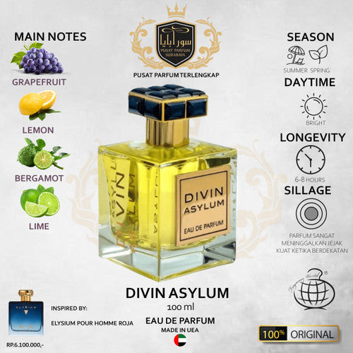 Fragrance World Unisex Divin Asylum EDP Spray 3.38 oz is a unisex fragrance that is a blend of woody and floral notes. It has top notes of grapefruit, bergamot, lemon, galbanum, and lime.