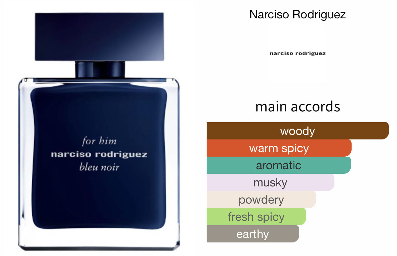 Narciso Rodriguez for Him Bleu Noir by Narciso Rodriguez is a Woody Spicy fragrance for men. Narciso Rodriguez for Him Bleu Noir was launched in 2015. The nose behind this fragrance is Sonia Constant. Top notes are Cardamom and Nutmeg; middle note is Musk; base notes are Vetiver, Cedar, Ebony Wood and Amber.